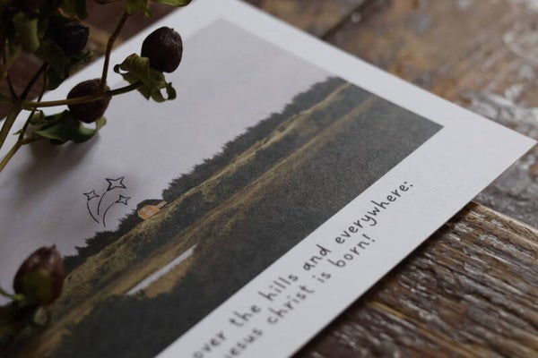 weihnachstkarte - tell it over the hills